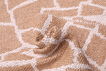 100% plastic where plastic straps are woven together and create rugs that are very durable and require minimal maintenance. Use mild detergent to remove any stains or wash at 30°C without any spinning cycle or tumble drying.